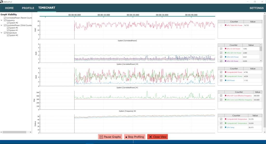 This will take you to a new page to check all the boxes for power, frequency, temperature, P-state, and controllers. Then click Start Profile. It should display the performance this way.