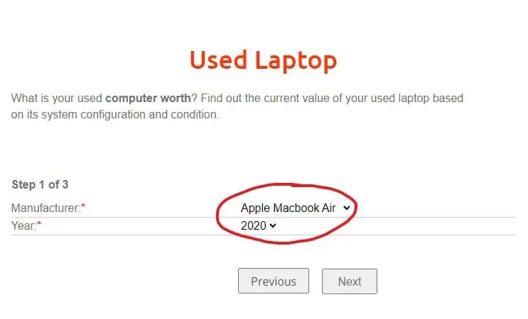 In this example, we’ll use gadgetvalue.com, where you can enter the current state of your laptop and the site will calculate the current approximated value.