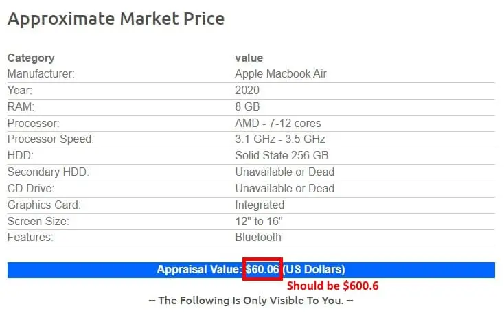 This is usually where we get the best price approximation, especially if we find a computer in similar condition.