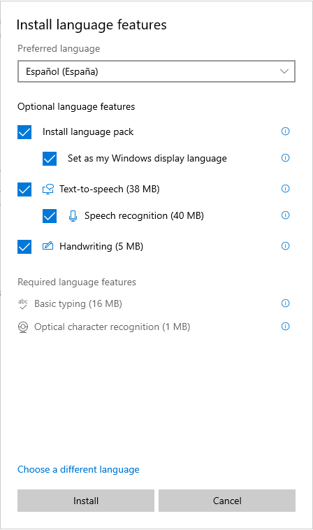 You will then see a screen Install language features and here you need to ensure that both Install language pack and Set as my Windows display language are checked. There are other options available so check those that you want.