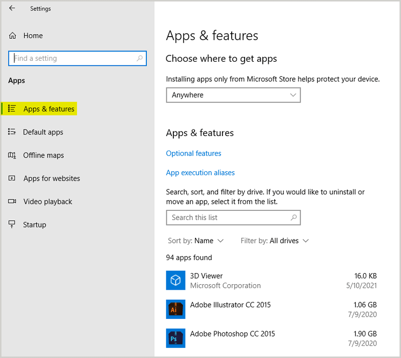 To uninstall any application on Windows 10, go to Settings > Apps > Apps and Features