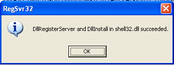 2. Click Start –> Run –> regsvr32 /i shell32.dll