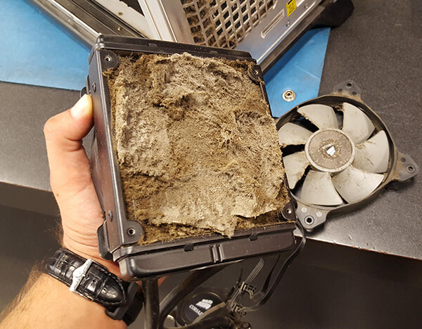 Fans tend to draw in the dust while your PC is running. In this case, a ton of duct piles up on the blade, making it difficult for the CPU fans to spin as expected.