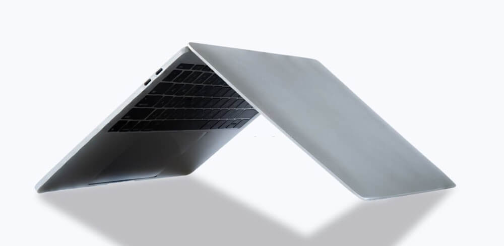 Hold your laptop with both hands and flip it upside down so that the keyboard is facing the floor.
