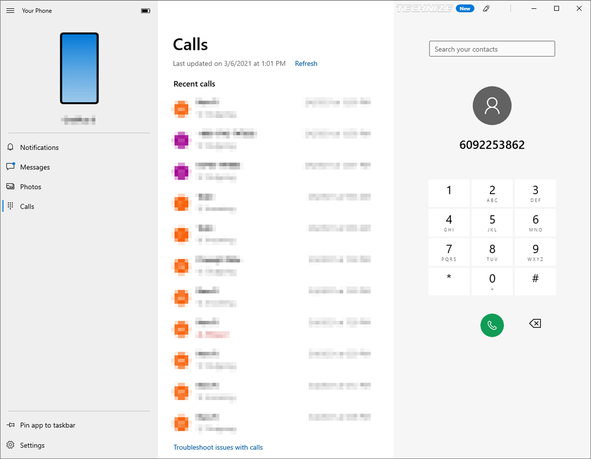 The instant you click Allow, you should receive another pop-up on your laptop; it will be your Phone/Dialer icon which should read as Calls. When you want to make a call, all you need to do is locate this icon.