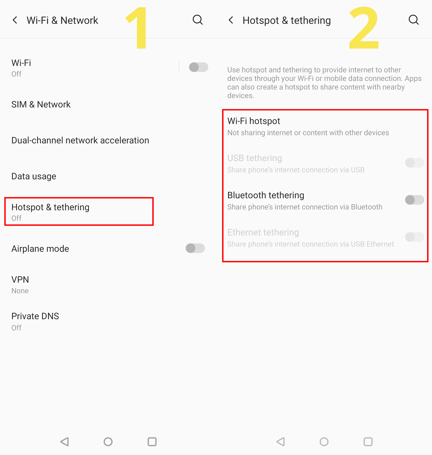 The first step is to go to the “Settings” in your mobile device and find the tethering options. These are usually in the Network and Internet section. You want to enable Bluetooth tethering with the toggle switch. You also need to turn on the data pack on your mobile device.