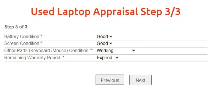 In this example, we’ll use gadgetvalue.com, where you can enter the current state of your laptop and the site will calculate the current approximated value.
