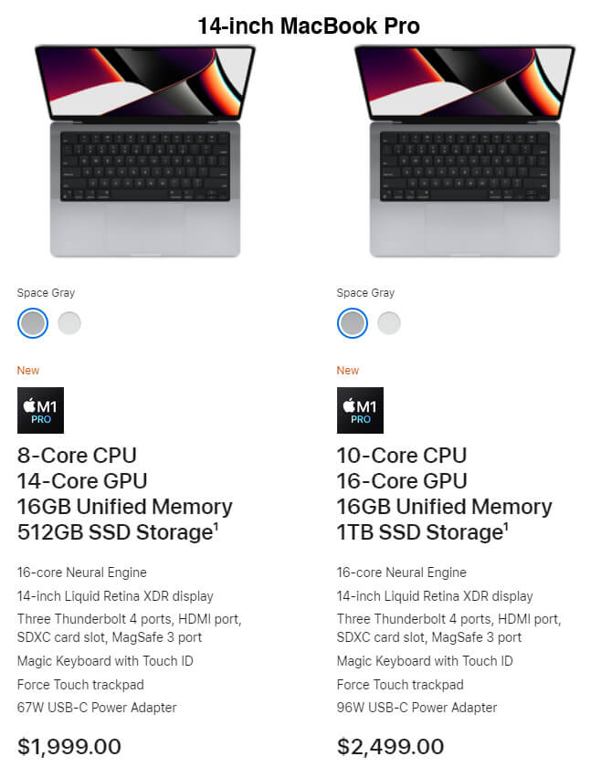 The 14-inch model comes with an 8-core CPU, 14-core GPU, and 16-core Neural Engine.