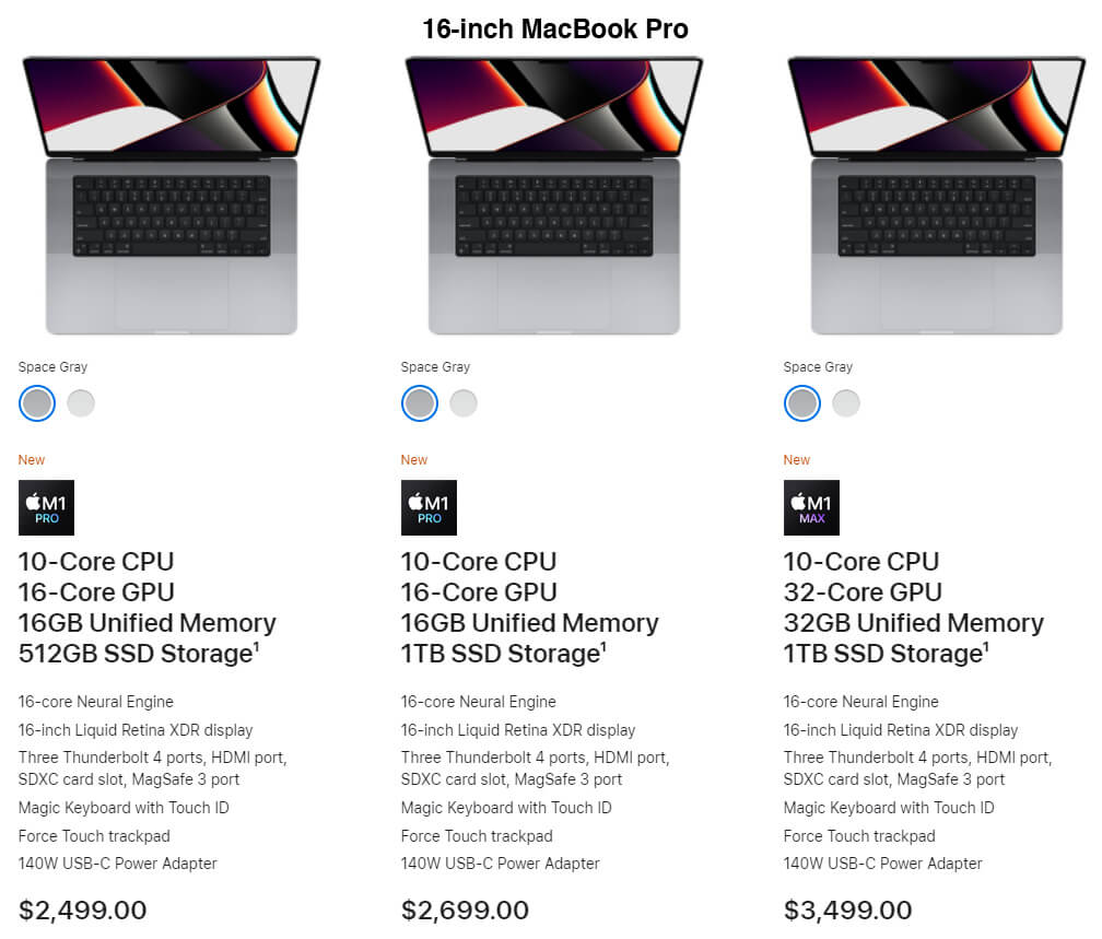 As for the 16-inch model, it has a 10-core CPU and 16-core GPU.