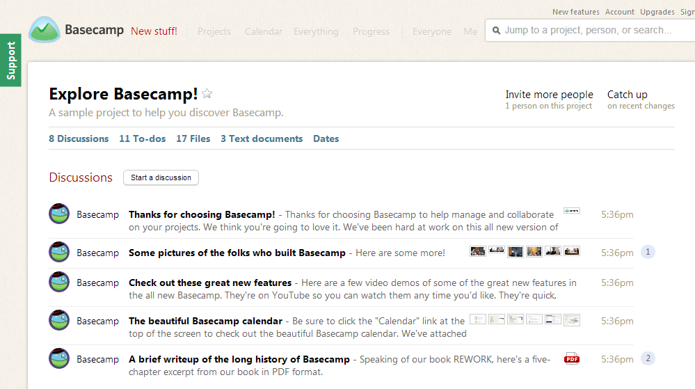 Basecamp is a good Evernote alternative but it is an expensive one. There is a 30-day free trial so you can assess whether it is right for you or not. I did like the fact that collaborators on a project can assign to-do lists to other team members and the group conversation feature is good.