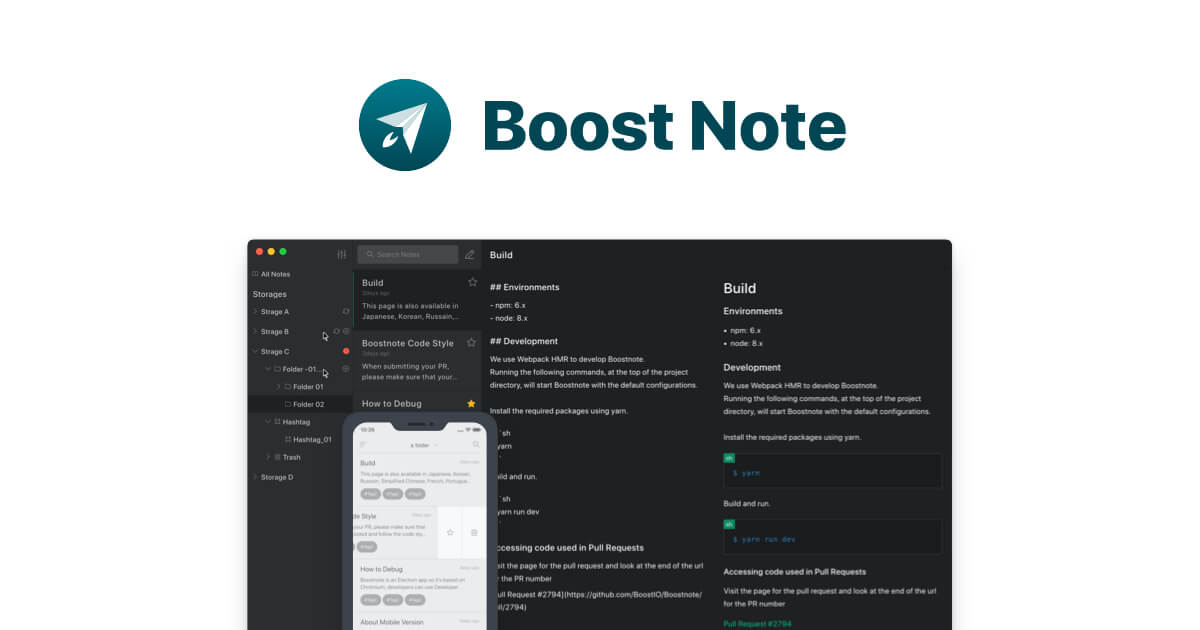 Bootsnote is an open-source Evernote alternative. You can use it with a Mac, Windows or Linux based computer. You don’t have to be online to take notes with Bootsnote as you can do this offline and then later sync up online.