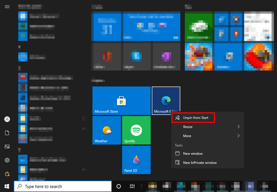There you will find an option stated Unpin from Start. Click on that option, as it will unpin that application from the start menu. With this option again, these applications will remain in your system, but you will not find any pop-up in the start menu.