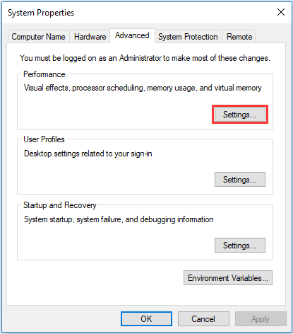 ① Go to this location: This PC > Properties > Advanced system settings.